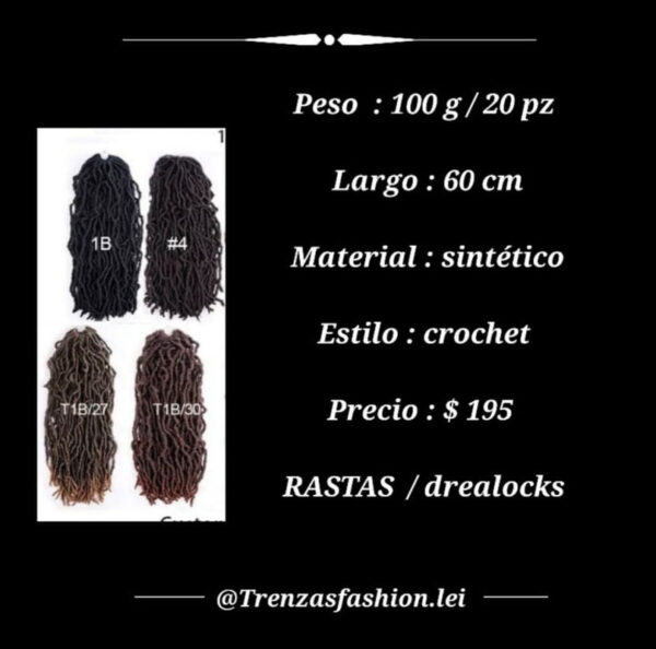 Faux locs de 24 pulgadas para aplicación método crochet, en la última imagen te comparto la descripción